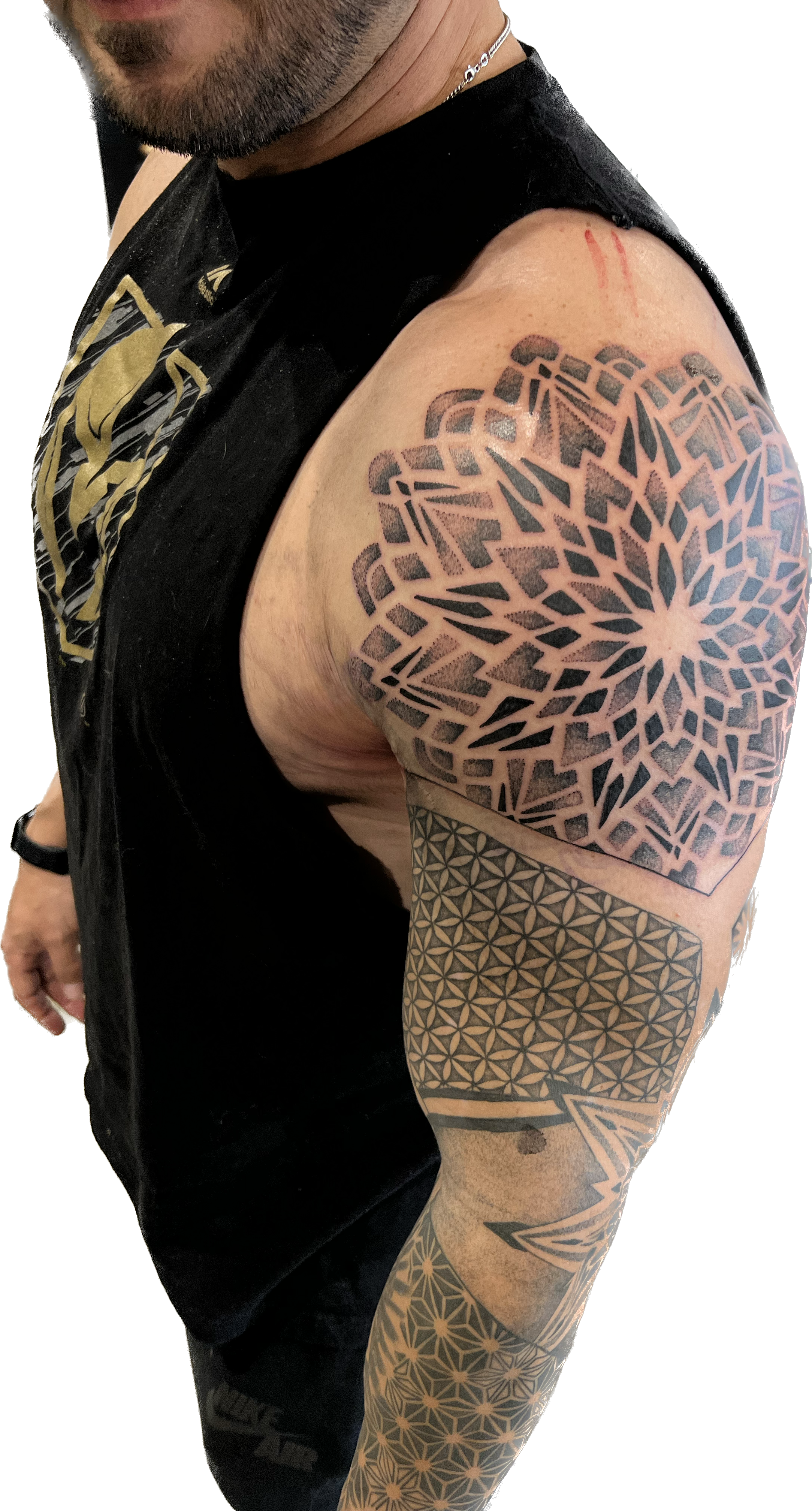 Miranda’s unique tattooing career began a decade ago. Over the years, she’s worked in many places — from London to Oakland — delivering high-quality tattoos to her diverse clientele. Today, you can find Miranda in OKC at Sacred Soul Collective.